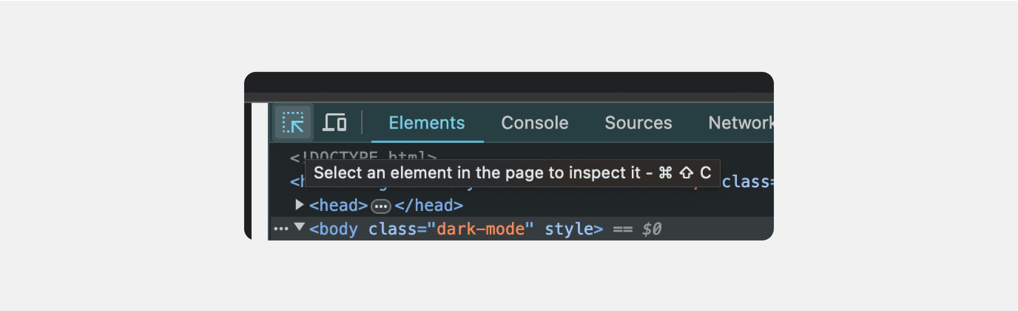 In order to be able to start recreating this button on Figma, you need some basic pieces of information about it. On the top left corner of this new panel, you’ll see a button with an top-left arrow called “Select an element in the page to inspect it.” Click and activate it. Now using your mouse, hover on the text and button itself to see its details.