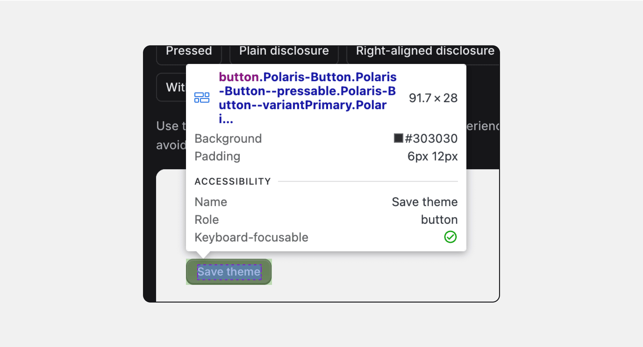 Here is the button page for Polaris design system. (To explore more design systems, you can check this list.) On this page, you can use the button, see how it behaves on hover and click, as well as check its different variants from the tabs.